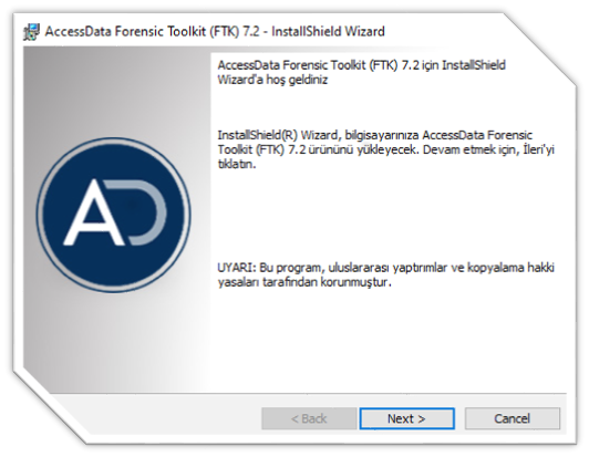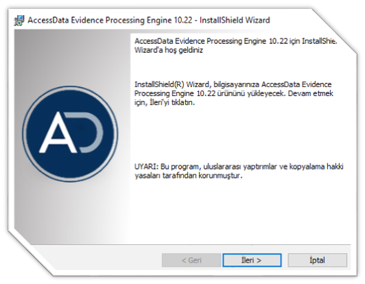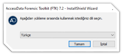 - Processing Engine programı kurulumu tamamlandıktan sonra FTK Tool Kit kurulumuna geçiyoruz. FTK programında çok sayıda dil desteği mevcuttur. Dil seçimini gerçekleştirdikten sonra kurulum işlemlerine başlıyoruz. Programımızın Türkçe dil seçeneğide mevcuttur. Fakat Türkçe dil seçeneğindeki çevirmeler çok başarılı olmadığı için ingilizce kurulması önerilmektedir. İşletim sistemi olan sürücü içeriğine programımızı kurabilirsiniz.