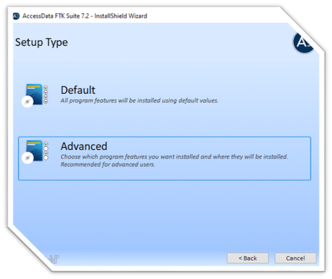 - FTK (Forensic Tool Kit) kurulumu için Next sekmesine tıklayarak gerekli ilerlemeleri sağladıktan sonra Setup Type sekmesi üzerinden Advanced sekmesini seçiyoruz. Daha sonra karşımıza kurmamız gereken 3 yükleme dosyasının bilgileri aşağıdaki gibi görüntülenecektir.