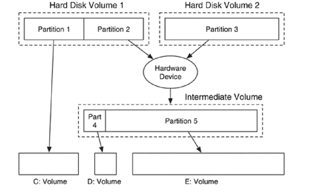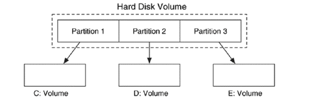 Bir harddisk volume’unun kendi dosya sistemi olan 3 küçük volume’a bölündüğünü varsayalım.